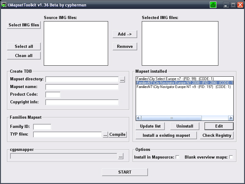In dem Feld „Mapset installed“ findet man alle seine auf dem Rechner installierten Kartensets und wählt das Set aus das verändert werden soll. In diesem Beispiel die City Navigator Europe NT 2008.
